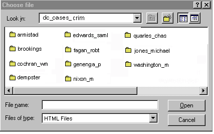 Clicking on the file folder, dc_cases_crim, opens its contents.
